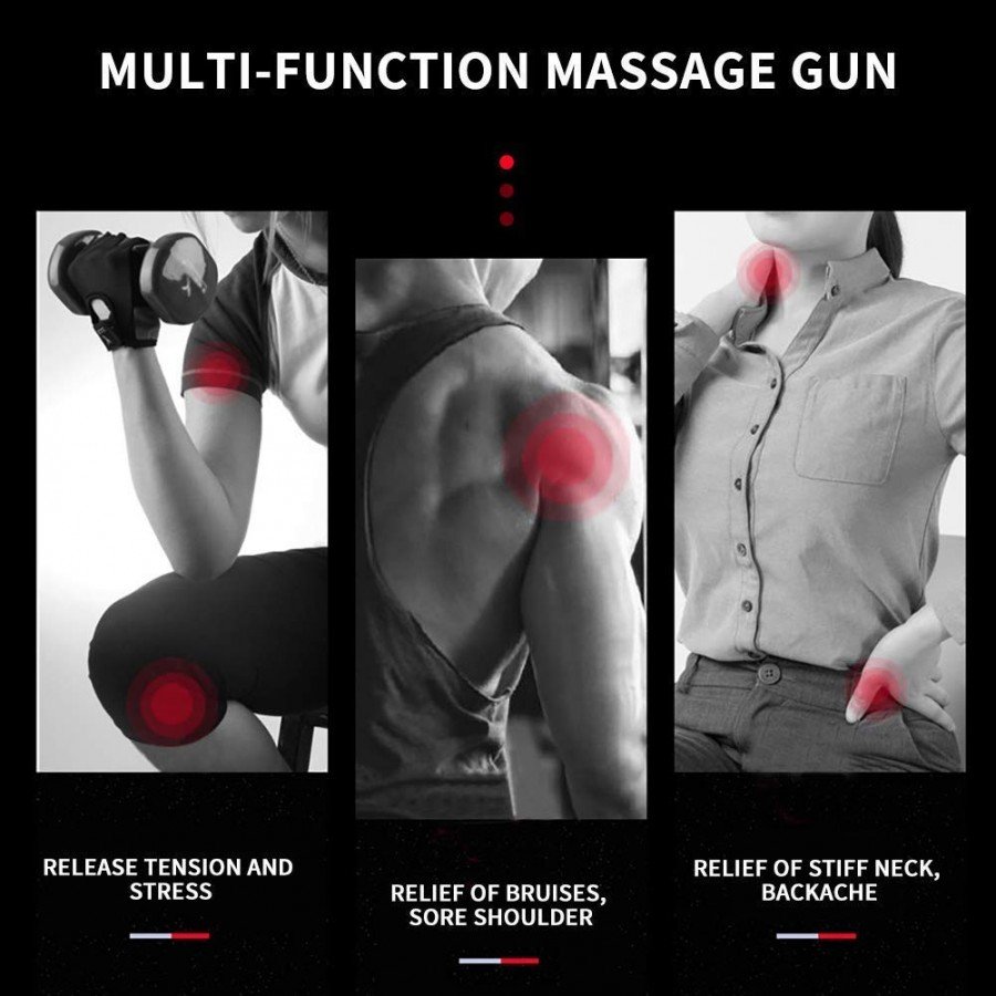 - 4 MASSAGE HEADS – The multifunctional gun has 6 adjustable speeds / frequencies and 4 interchangeable rubber massage heads, which can locate the pressure points of neck, back, lower leg, leg, shoulder, buttock, etc. Suitable for all-round relief at any time and anywhere.