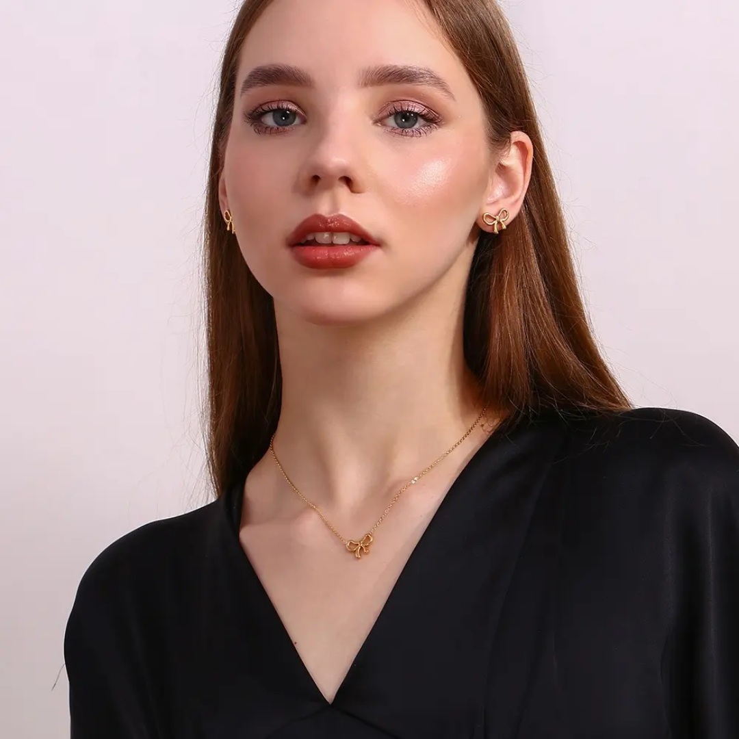 Embrace timeless femininity with our Aura Bow Set. This exquisite duo features a delicate, fluid bow design that captures the essence of modern Korean minimalism. Crafted for the woman who loves effortless elegance, this set transitions seamlessly from a morning coffee date to a sophisticated evening gala.