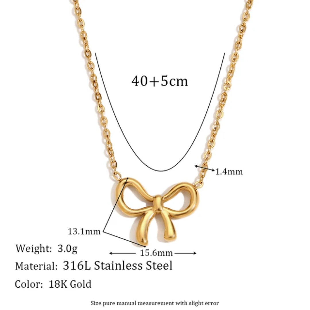 Korean-Inspired Aura Bow Pendant & Earrings Set